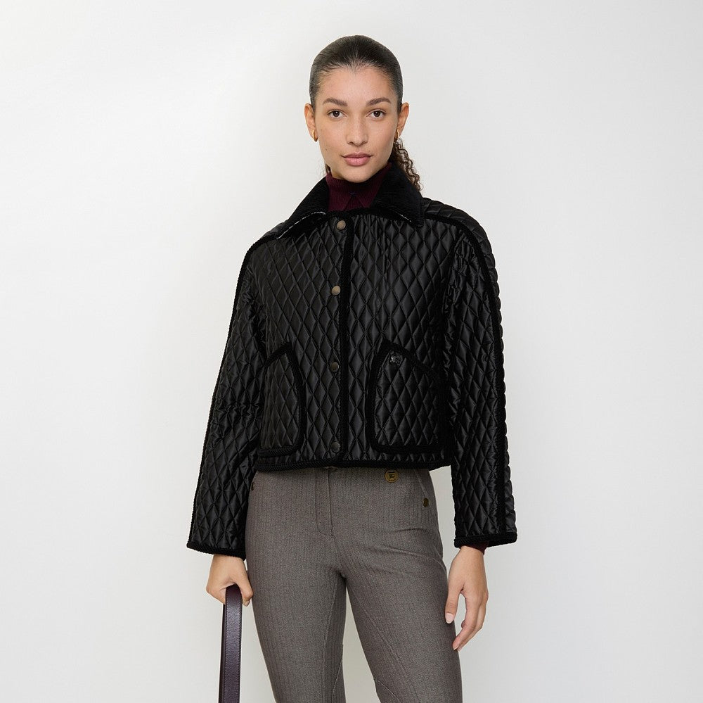 Burberry Quilted Velvet-Collar Jacket -Jet Black