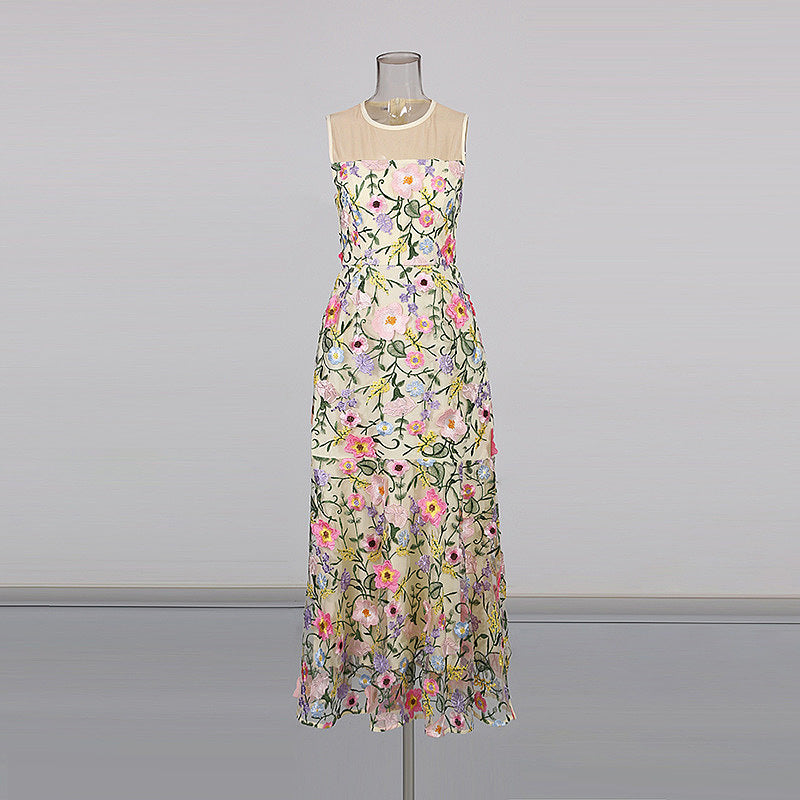 Floraison Élégante Embroidered Maxi Dress – Jardin Multicolor