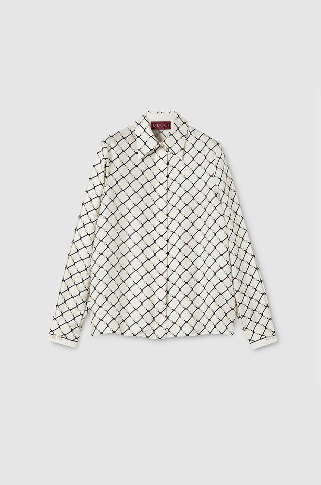 Gucci Horsebit Lattice Silk Shirt – Avorio Signature