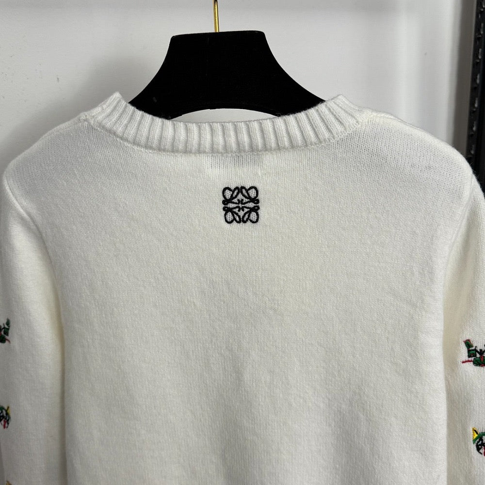 Loewe Embroidered Motif Crewneck Knit Sweater – Ivory