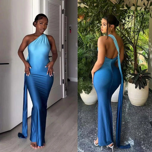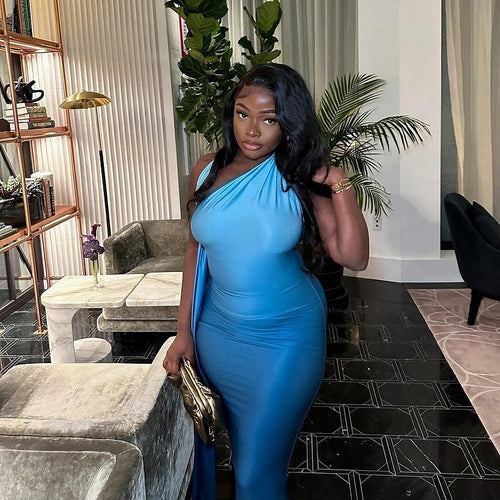 Wear the 'Babe of the Blue' dress as a stunning sleeveless bodycon dress in gradient blue colors. It features an off-shoulder design, adding a touch of sexiness to the overall look. It's perfect for making a bold fashion statement! 💙👗