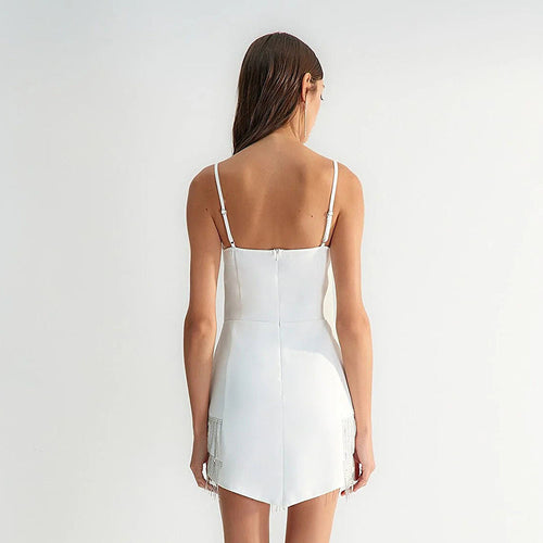 The 'Fiona' Luxury Dress is a dazzling choice. With diamond fringes that shimmer and a zip-up back for a sleek fit, this dress is perfect for any glamorous event. Available in sizes S (3-6), M (6-8), and L (8-10), it's sure to make you stand out in style.