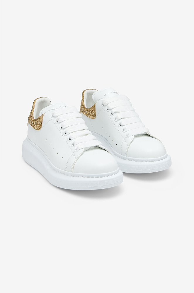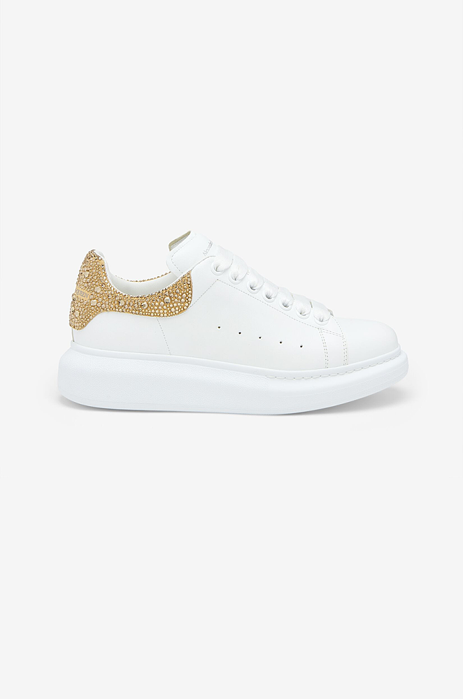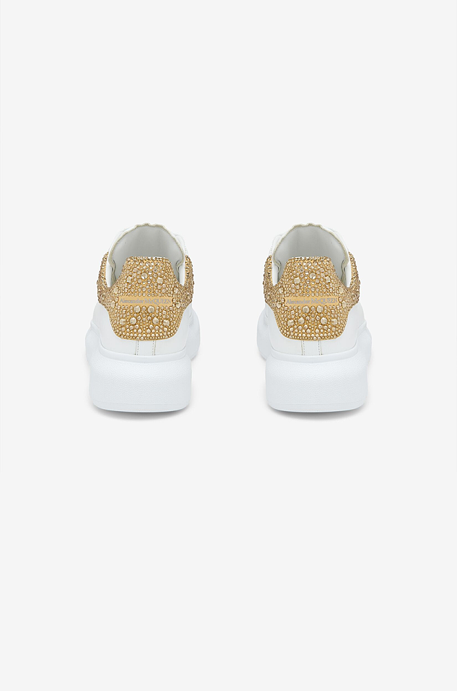 Alexander McQueen Oversized Sneaker – White with Gold Crystal Heel