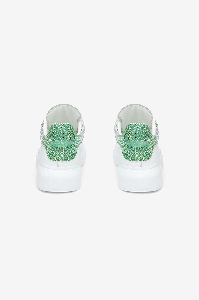 Alexander McQueen Oversized Sneaker – White with Green & Silver Crystal Heel