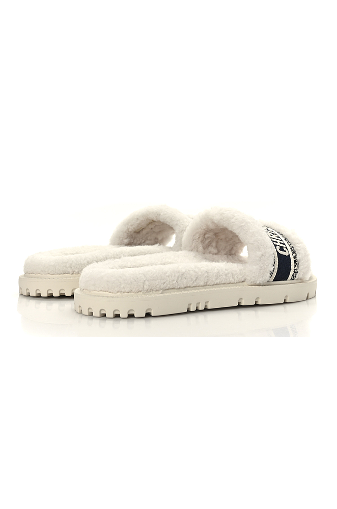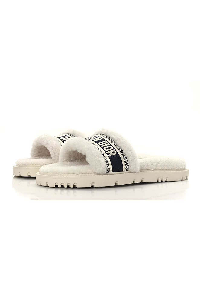 Elevate your off-duty style with Dior’s plush Dway Shearling Slides, a modern reimagining of the maison’s iconic silhouette. Designed with ultra-soft shearling for unmatched comfort, these slides feature the signature “CHRISTIAN DIOR PARIS” embroidery across the band, exuding casual elegance. The lightweight, notched rubber sole ensures durability and grip, making them as practical as they are luxurious.