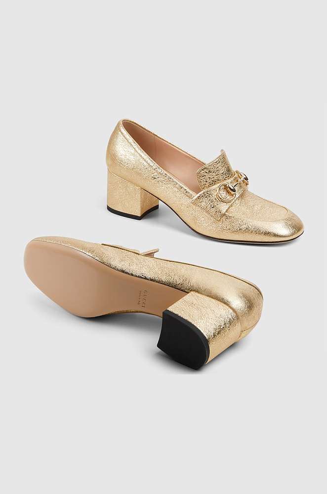 GUCCI “Aurum Classica” Metallic Gold Horsebit Block-Heel Loafer (36–42)