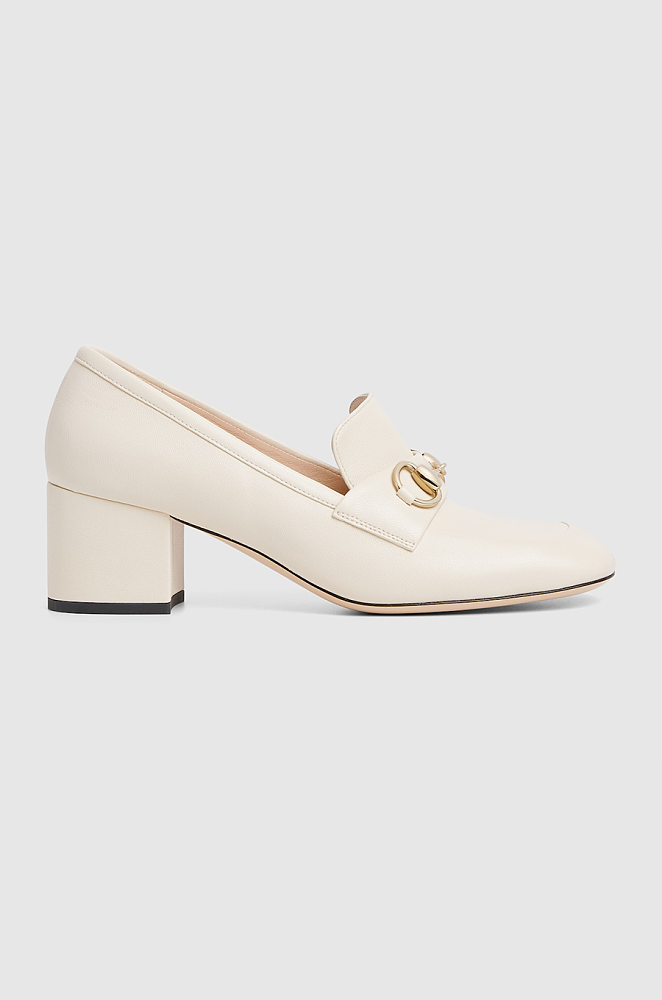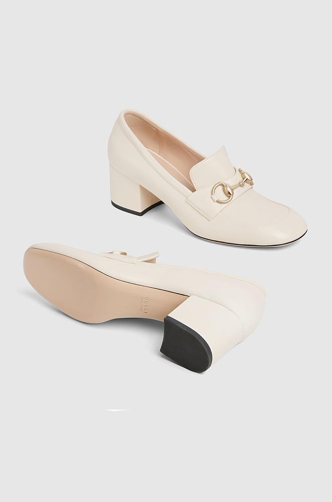 GUCCI “Ivory Romana” Patent Horsebit Block-Heel Loafer (36–42)