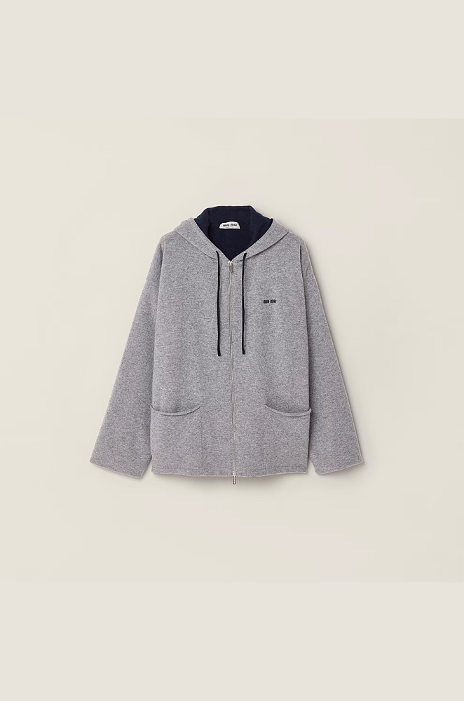 Miu Miu Zip-Front Wool Hoodie Jacket