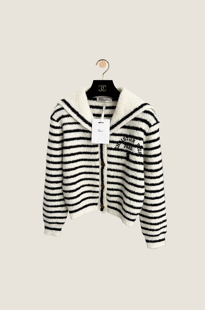 Dior “Marinière d’Hiver” Striped Bouclé Cardigan