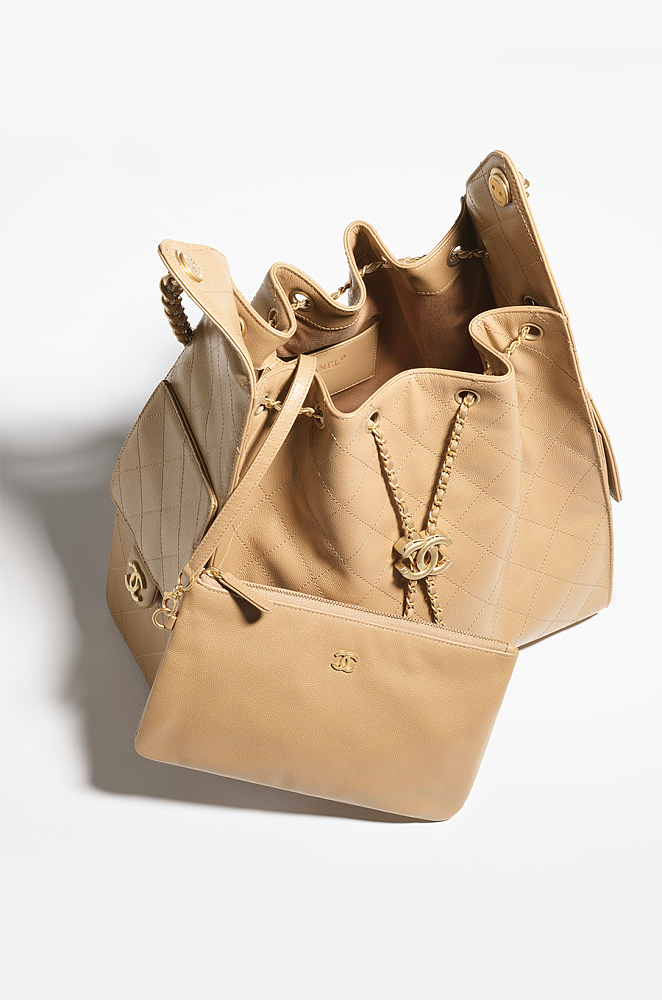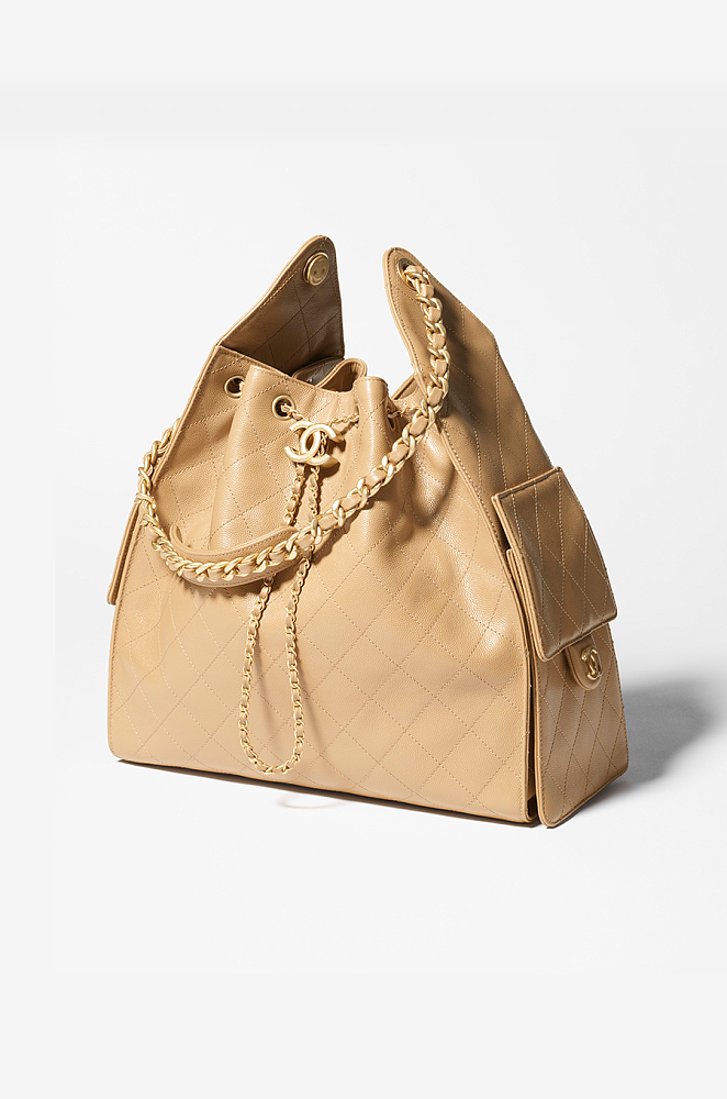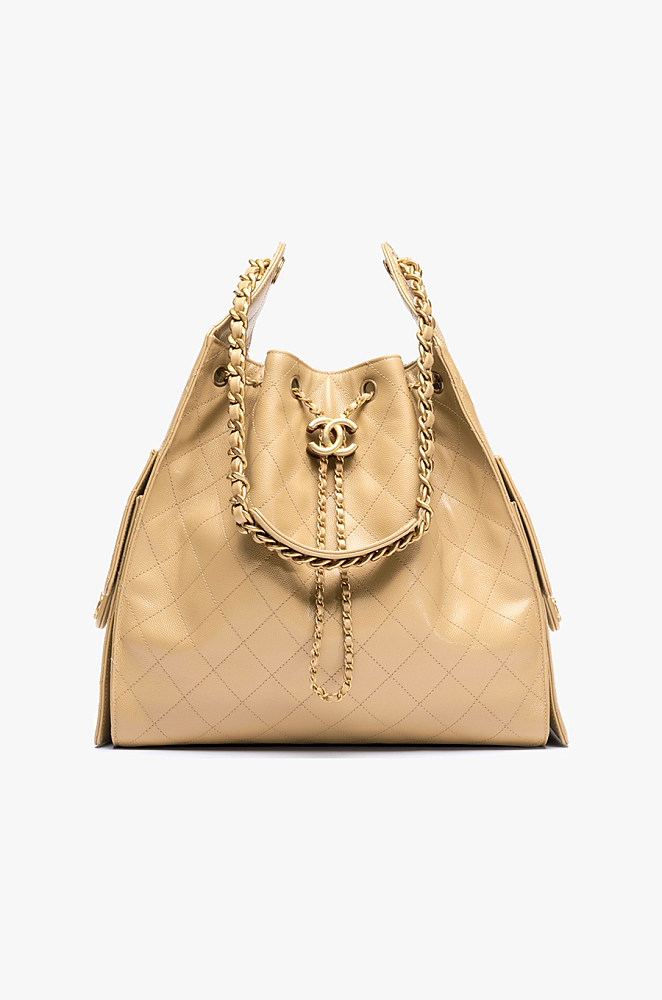 Chanel 22 Hobo Drawstring Tote Bag – Beige Quilted Calfskin with Gold-Tone Hardware