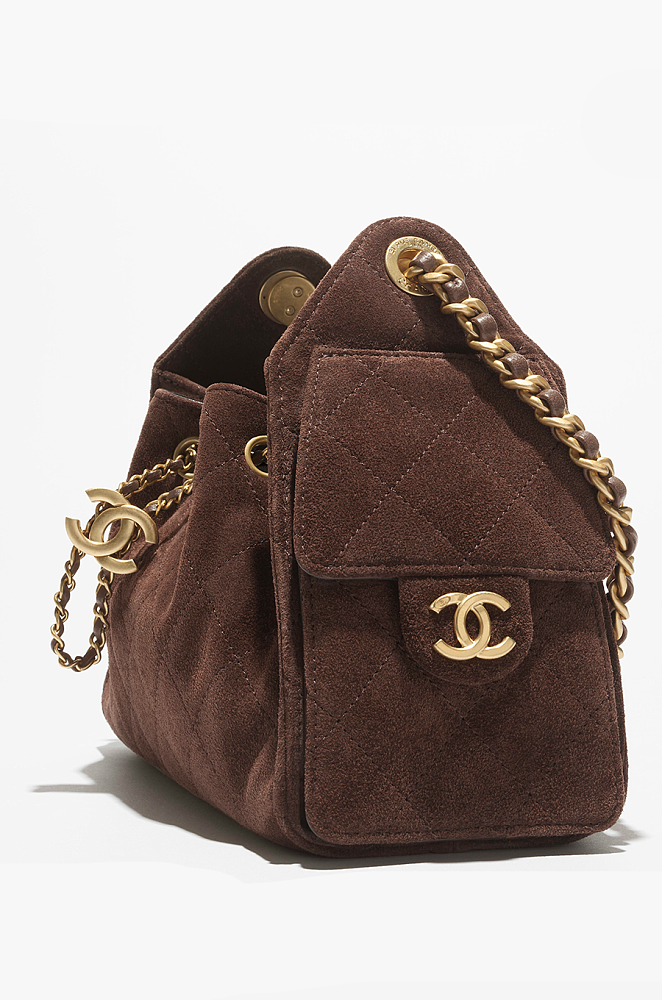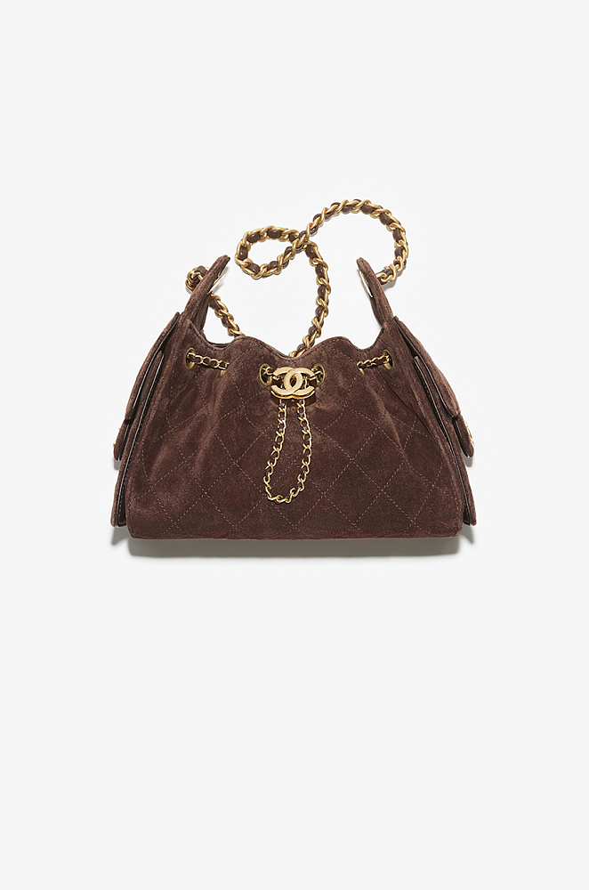 Chanel “Cacao Cabas” Quilted Suede Drawstring Mini Bag — Chocolate