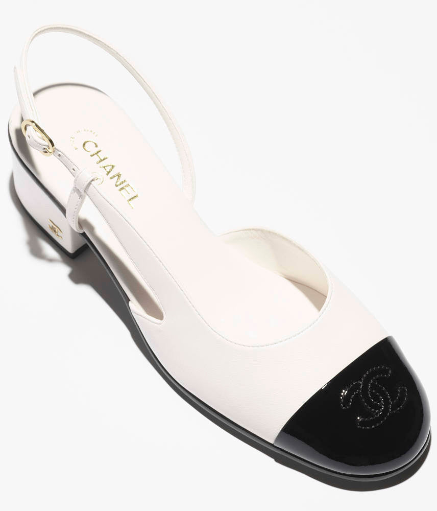 Chanel Épure Slingback Pumps – Blanc & Noir Low Heel Edition