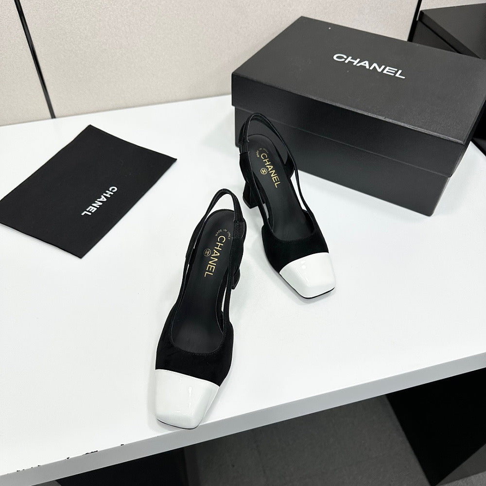 Chanel Épure Slingback Pumps – Noir & Blanc Patent Edition