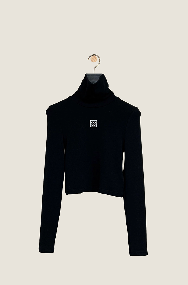 Elevated, sculpted, and unapologetically iconic — the CHANEL Noir Icone Cropped Turtleneck Top is the modern essential for the woman who commands every room with quiet luxury. Crafted in a premium stretch knit, this piece contours the body with a clean, structured silhouette while offering all-day comfort and warmth.