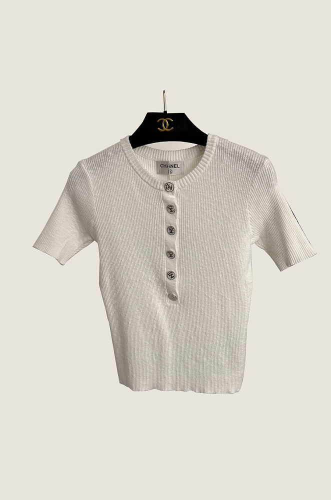 Chanel Ribbed Knit Button Tee