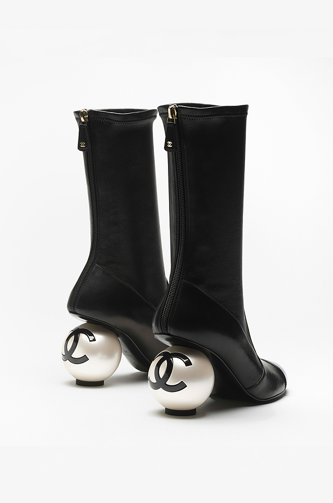 Chanel Stretch Lambskin & Patent Calfskin High Boots with Pearled Heel