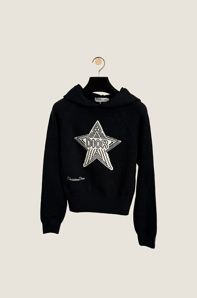 The Christian Dior Étoile d’Or Knit Hoodie captures the maison’s celestial elegance through an artisanal blend of Parisian craftsmanship and casual refinement. Spun from an ultra-soft wool-cashmere knit, this relaxed silhouette is adorned with the iconic Dior star emblem—a nod to Monsieur Dior’s lucky charm and enduring symbol of destiny. Finished with ribbed hems and the Christian Dior signature embroidery, this piece embodies effortless luxury — designed for modern muses who shine with quiet power.