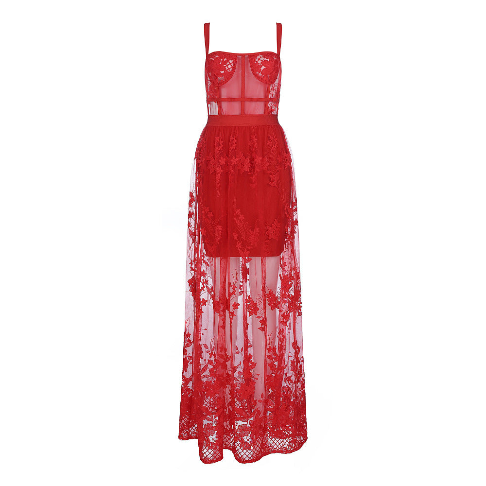 A vision of bold femininity and couture-inspired elegance, the Écarlate Illusion Corset Lace Gown captures the drama of eveningwear through delicate craftsmanship and sculpted structure. Designed with a defined corset bodice and sheer illusion paneling, the gown highlights the waist while creating a striking architectural silhouette.