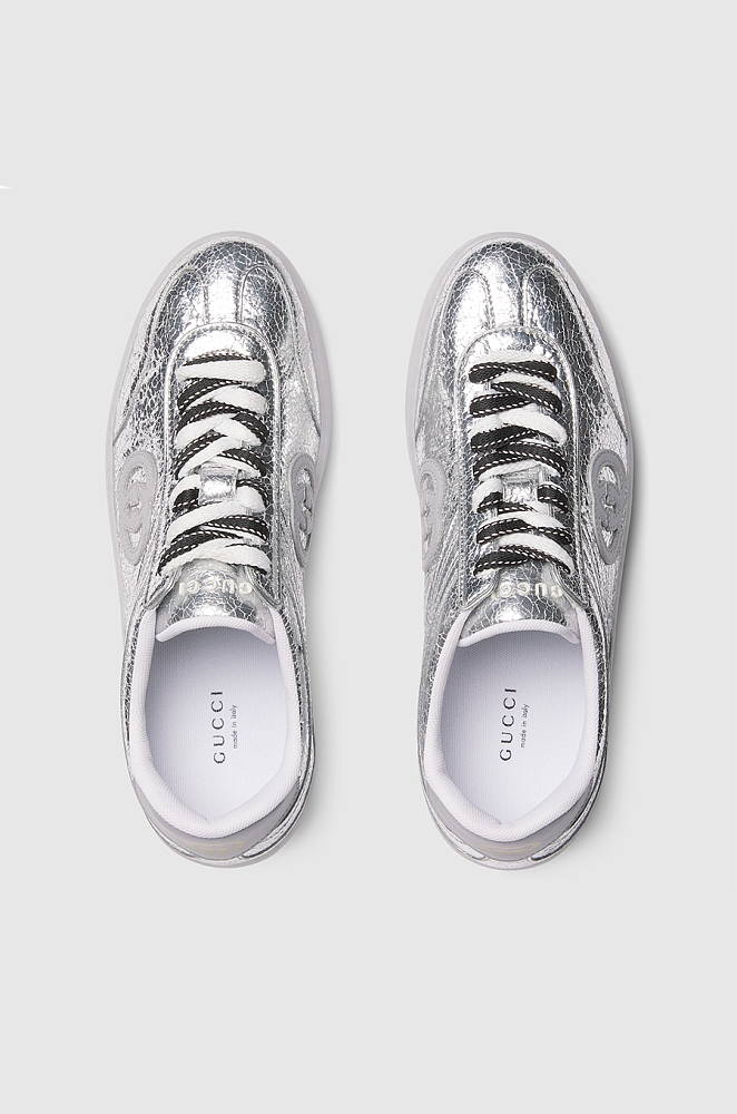 Gucci “Argento Monogram” Metallic Low-Top Sneakers