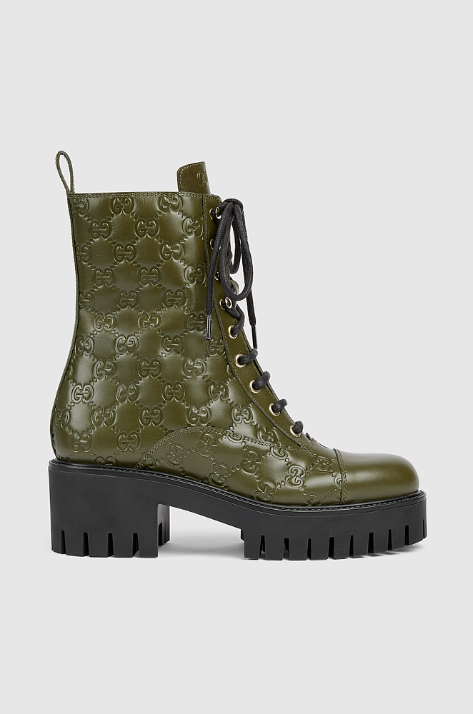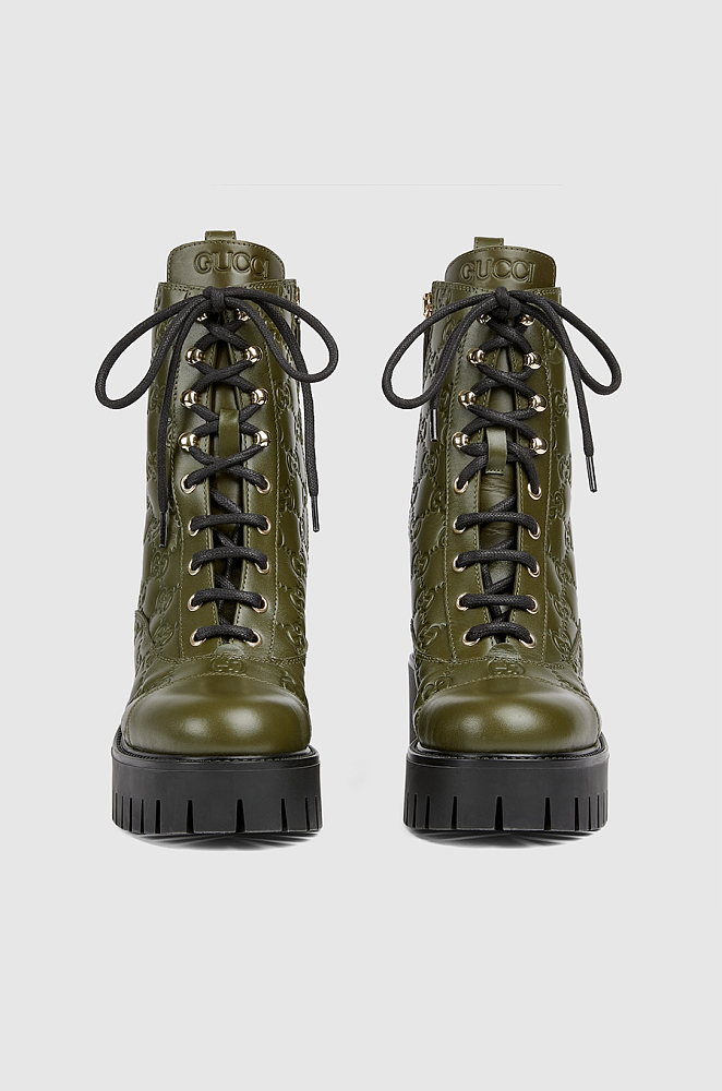 Gucci GG Embossed Combat Boots – Olive Green