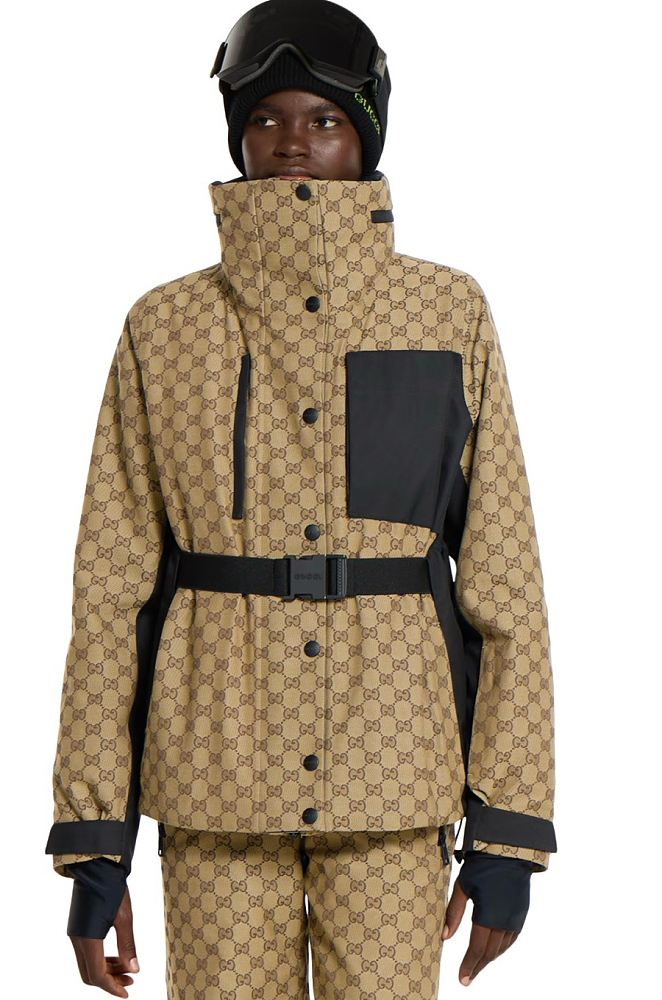 Pair with Gucci’s matching monogram technical overalls or leather boots for a polished après-ski ensemble. Elevate the look with oversized goggles, sleek gloves, or monogram accessories to channel the energy of elite European winter resorts.