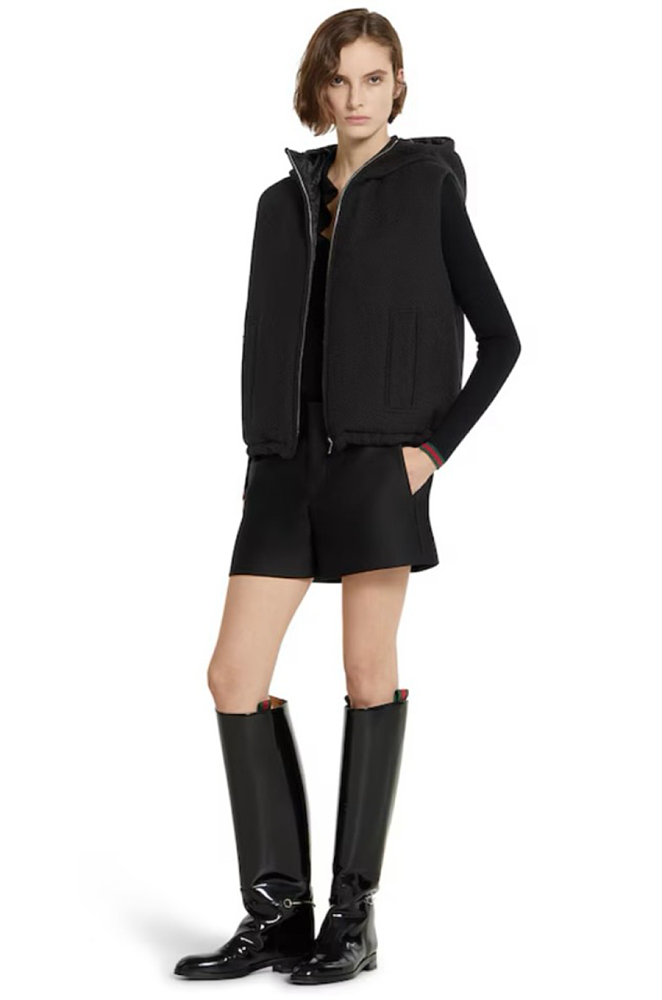Perfectly layered over fitted knits, leather pants, or the monogram ski trousers from Gucci’s winter capsule. Pair with statement sunglasses or a sleek turtleneck for a rich, urban-luxe edit.