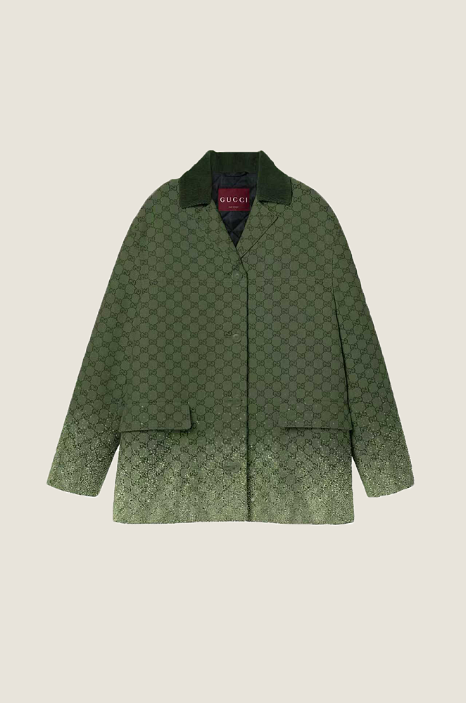 Gucci -Verde Opale” Embellished Monogram Coat Set