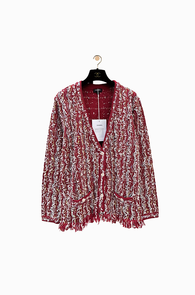 “Mademoiselle Grenat” Chanel Textured Crêpe-Tweed Jacket — Fringed Burgundy Atelier Edition