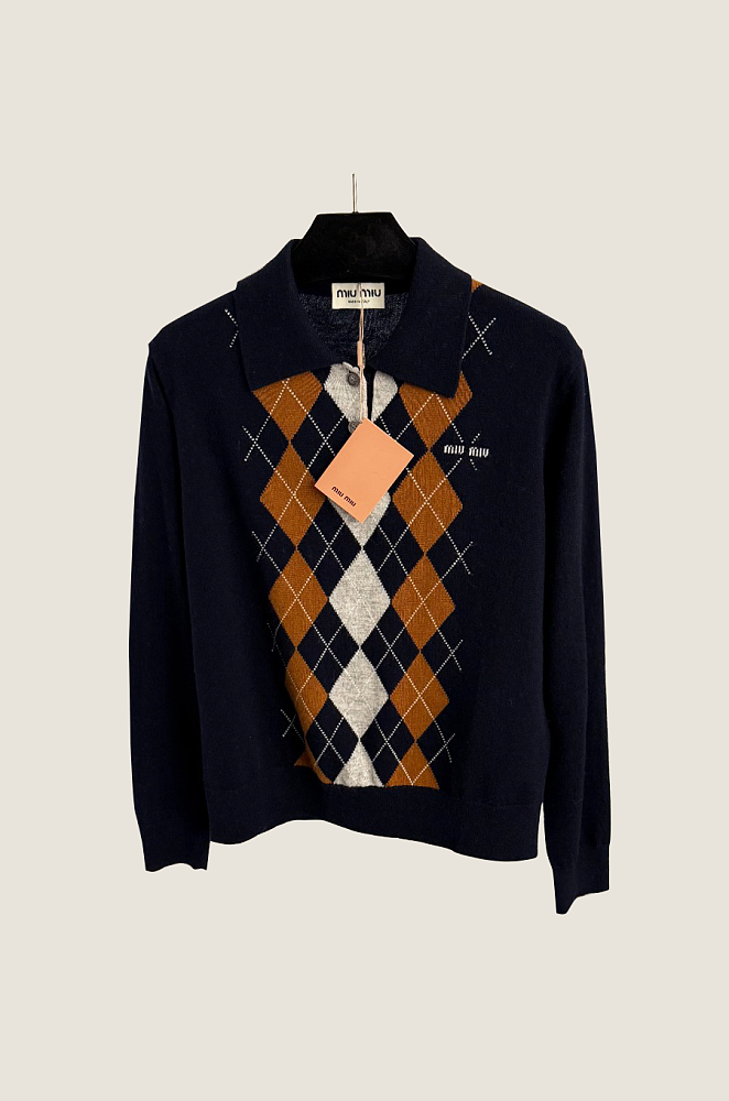Miu Miu Argyle Knit Polo Sweater