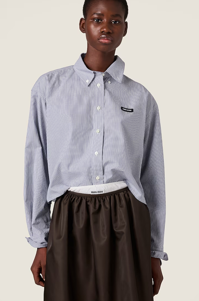 Miu Miu “Bleu Élégance” Gingham Button-Down Shirt