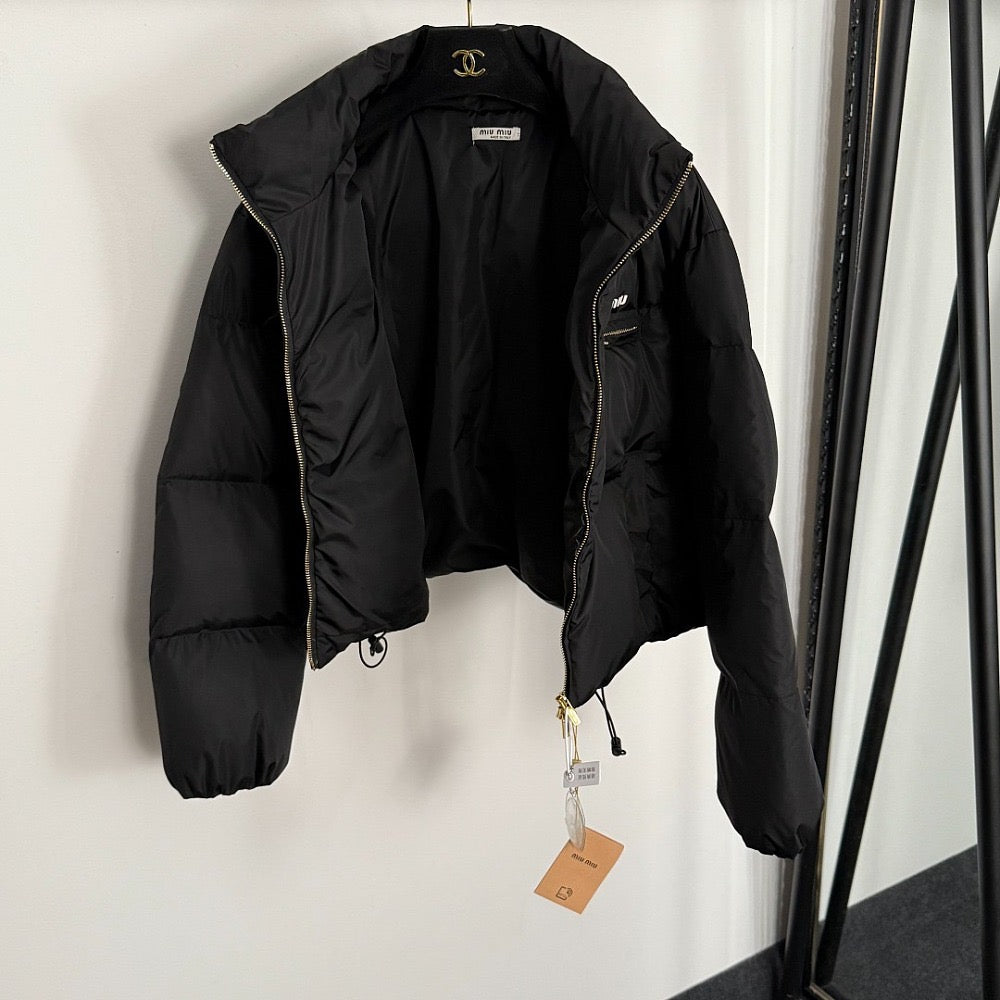 Miu Miu Cropped Logo Down Puffer Jacket – Black