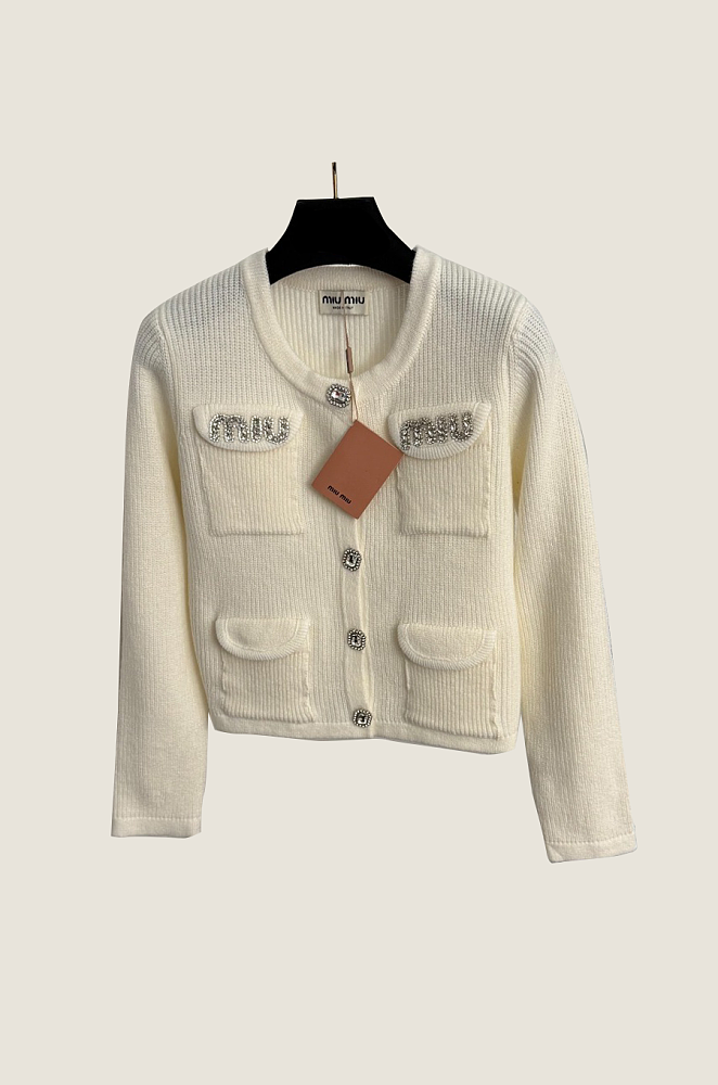 Miu Miu Crystal Crest Knit Cardigan – One Size