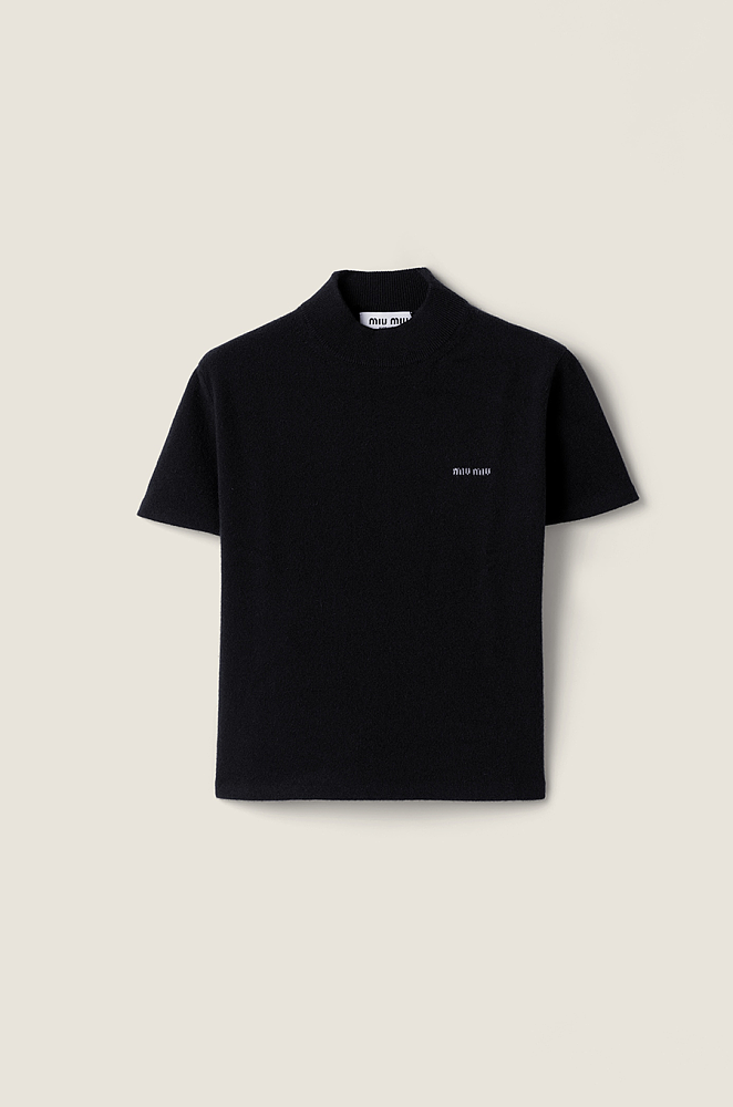 An icon of modern minimalism — the Miu Miu Luna Knit Tee embodies the house’s effortless elegance through precise craftsmanship and timeless form. Crafted from a sumptuously soft cashmere blend, this short-sleeve sweater flatters with its sculpted silhouette and refined high crew neckline.