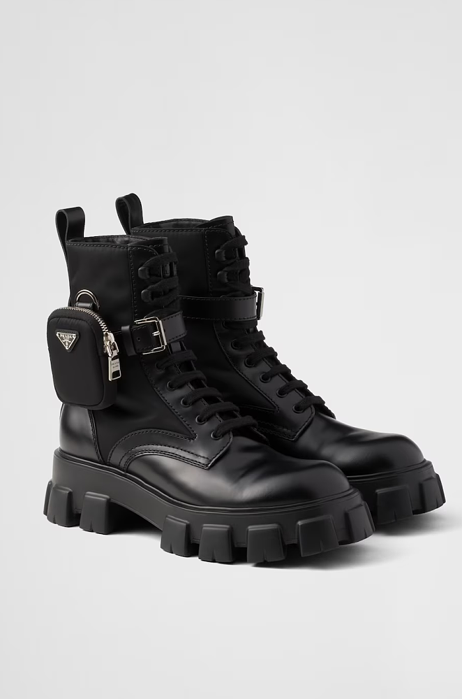 Prada Monolith Leather Combat Boots with Removable Pouch – Black