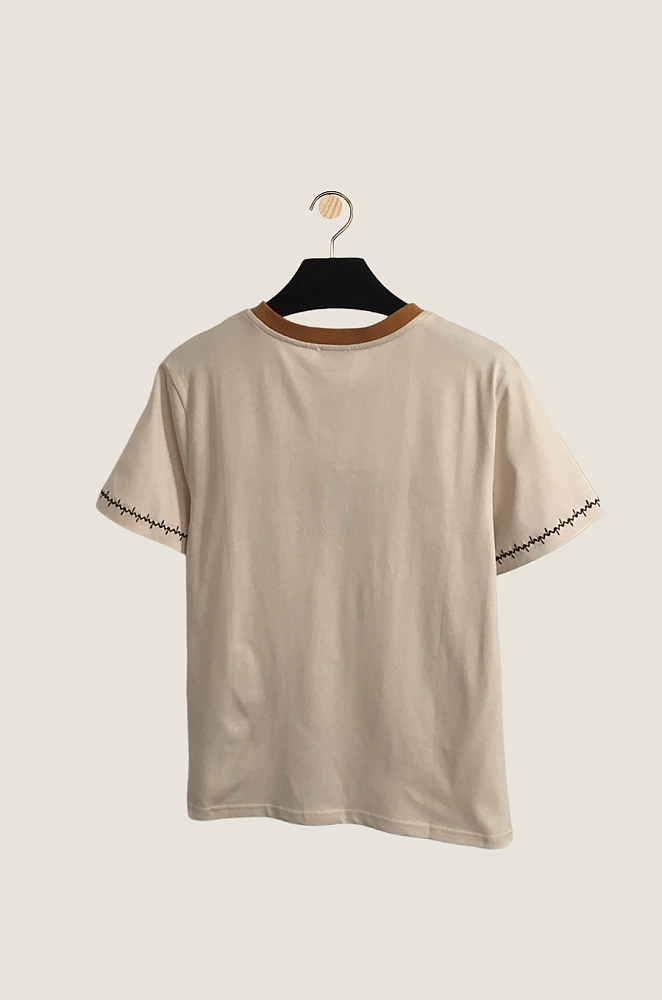The Rive Gauche Saint Laurent Tee embodies understated Parisian sophistication with a modern twist. Crafted from premium soft-touch cotton in a delicate ivory hue, this statement piece features raised black embroidered lettering and a contrasting camel neckline that nods to Saint Laurent’s classic vintage heritage. The refined silhouette, accented with subtle cross-stitch detailing along the sleeves, offers effortless luxury—whether styled casually with denim or paired beneath a tailored blazer for a chic street-couture look.