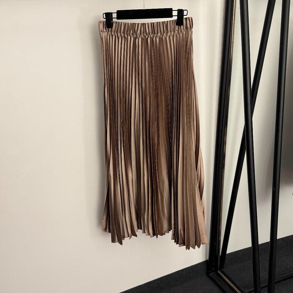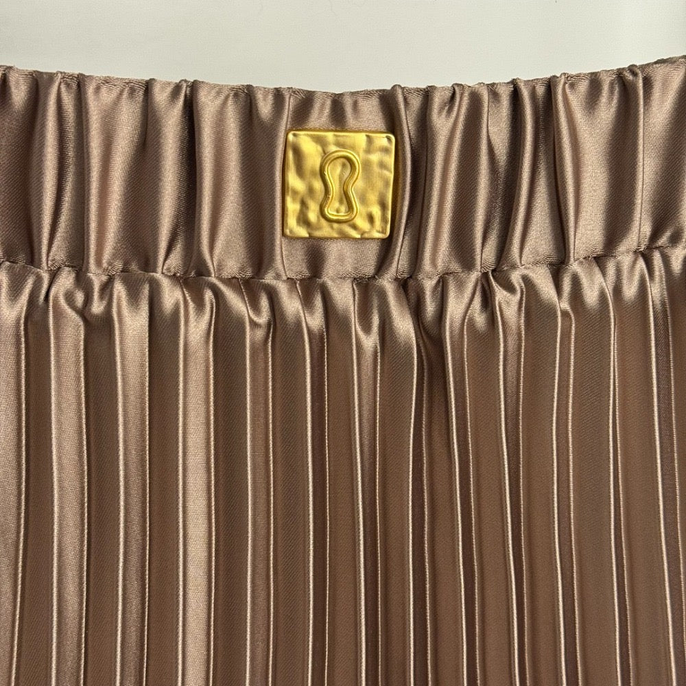 Schiaparelli Bronze Satin Pleated Midi Skirt