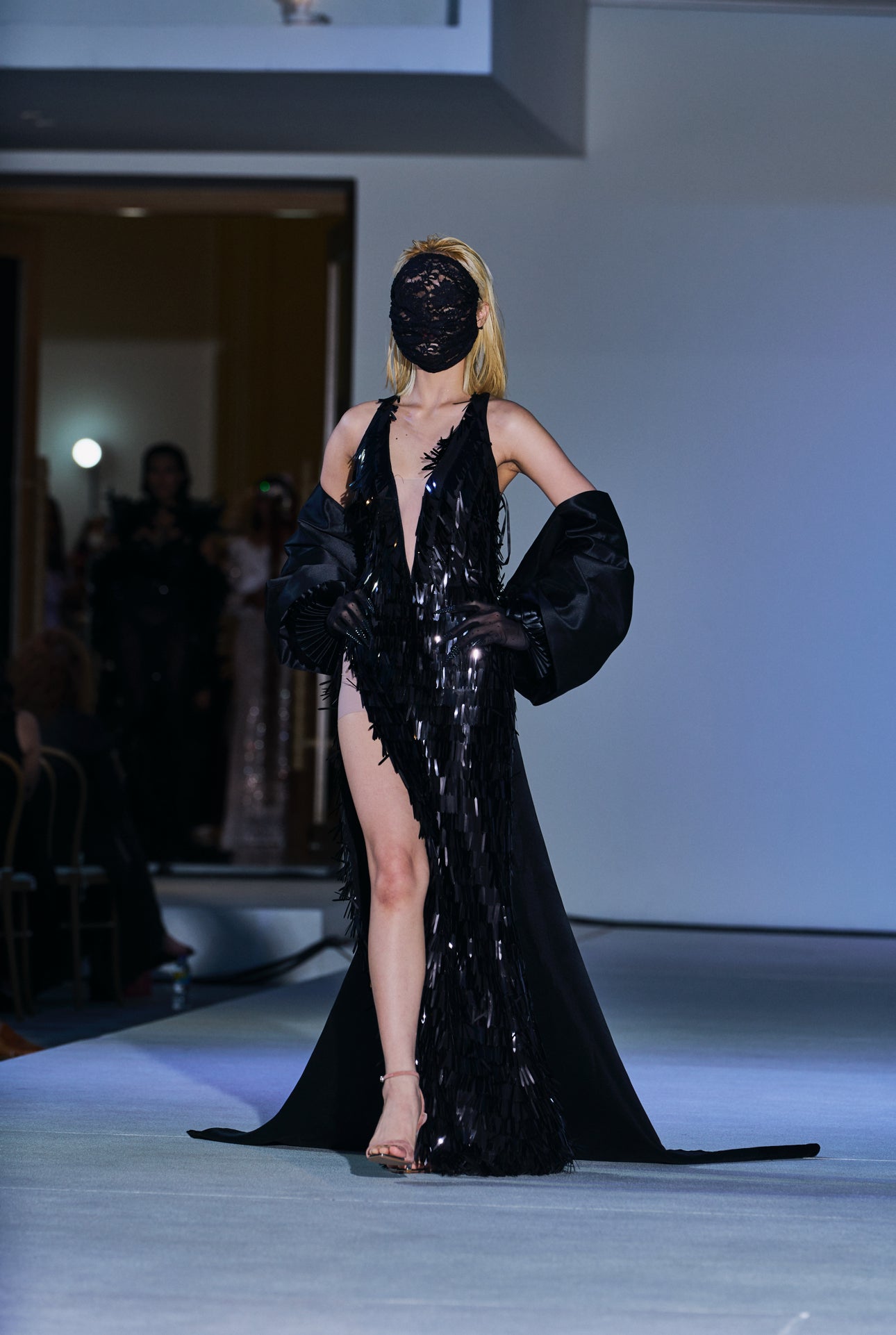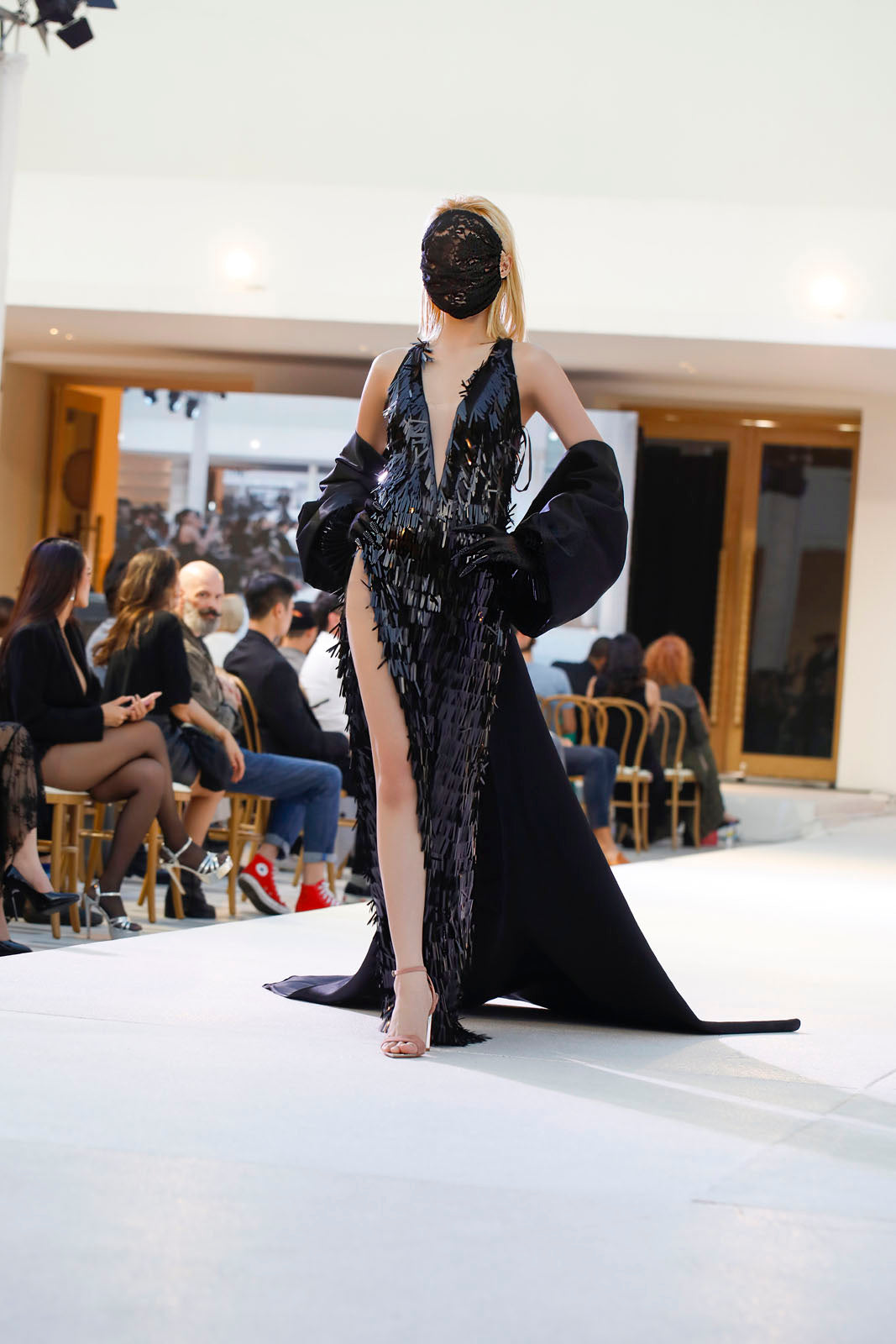 • Color: Black with reflective sequin plumes