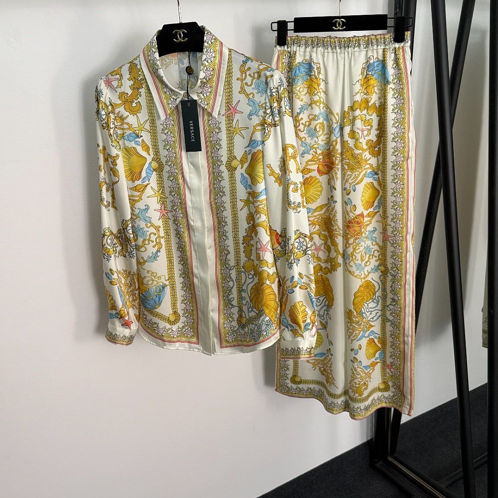 Effortlessly versatile, this set can be styled together for a coordinated luxury lounge look, or worn separately—pair the shirt with denim for a bold streetwear statement, or style the pants with a bikini top and gold jewelry for a resort-ready ensemble. Add heels and a bold clutch for an evening transformation.