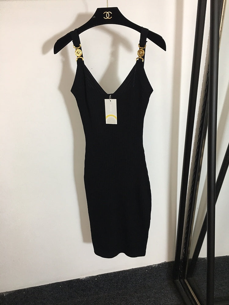 Step into the world of opulence with the Versace Knitted Dress, a stunning fusion of refined craftsmanship and bold glamour. This impeccably tailored dress is crafted from luxuriously soft knit fabric that contours effortlessly to the silhouette, offering both comfort and elegance. The pièce de résistance lies in the exquisite gold logo-chained straps—signature Versace details that shimmer with iconic sophistication and add a daring touch of decadence. Every element of this dress speaks to Versace’s fearless approach to fashion, making it the perfect statement piece for those who command attention with effortless style. Whether worn for an exclusive soirée or a high-profile event, this dress embodies timeless luxury with a modern edge.